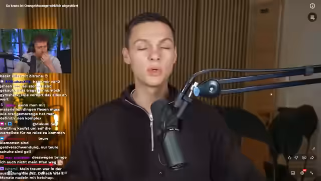 01:28:56Nachdem er sich 2025 als reicher und erfolgreicher Influencer dargestellt hat, verkündete OrangeMorange überraschend das Ende seines Streamings. Sein letzter Stream soll am 31.12.2025 stattfinden, danach möchte er sich nach eigener Aussage in den wohlverdienten Ruhestand begeben. Dieses Vorhaben umfasst den vollständigen Rückzug aus den sozialen Medien mit der Umbenennung seines Instagram-Accounts und der Löschung weiterer Profile. Der Wechsel von einem früheren, bodenständigen Image zu einem vollkommen von Luxus und Provokation geprägten Lebensstil scheint zum Zeitpunkt dieser Ankündigung abgeschlossen zu sein.