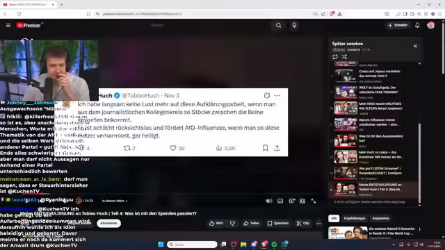 02:28:09Es wird kritisiert, dass Tobias Huch die liberale Flüchtlingshilfe e.V. für persönliche Zwecke instrumentalisiert, indem er Posts der Organisation verwendet, um eigene Konflikte oder Blockierungen durch andere Organisationen (wie Seenotrettung, NATO oder ARD-Morgenmagazin) zu thematisieren. Dies wird als peinlich, kindisch und unseriös empfunden, da eine Spendenorganisation nicht als Sprachrohr für persönliche Angelegenheiten dienen sollte. Zudem wird auf Tobias Huchs private Spendenaufrufe auf GoFundMe hingewiesen, bei denen er Gelder für Anwalts- und Gerichtskosten gegen „Hassrede“ oder „umstrittene Influencer“ sammelt. Insgesamt wurden so über 57.000 Euro für rechtliche Auseinandersetzungen gesammelt, darunter auch gegen den Streamer selbst oder andere Influencer wie Shuyoka und Enissa Armani. Es wird hinterfragt, warum ein angeblich extrem erfolgreicher Influencer seine Community bitten muss, seine Streitereien zu finanzieren. Es wird die Forderung aufgestellt, dass Tobias Huch nicht nur die Finanzen seiner Spendenorganisation, sondern auch seine privaten Spendenaufrufe transparent offenlegen sollte, um zu zeigen, wofür die Gelder genau verwendet wurden.