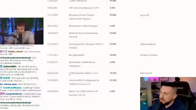 02:05:33Um eine möglichst realistische Schätzung der Ausgaben zu erhalten, wurden die auf Social Media geposteten Hilfsgüter, wie ein Jetski, Wasserfilter und Decken, detailliert recherchiert und deren Preise ermittelt. Die Schätzung der Kosten für die Hilfsgüter basiert auf den Angaben der Organisation selbst, wo verfügbar, oder auf eigenen Recherchen, wobei bewusst nicht der minimalste Preis angesetzt wurde, um eine realistische Obergrenze zu erreichen. So wurden beispielsweise Wasserfilter mit 340 Euro pro Stück und Busse mit 10.000 Euro in die Berechnung einbezogen. Trotz dieser umfassenden Recherche wurde eine erhebliche Diskrepanz zwischen den geschätzten Ausgaben und den mutmaßlich eingenommenen Spenden festgestellt. Es wird betont, dass diese Schätzungen grobe Annahmen sind und nicht davon ausgegangen wird, dass die Postings vollständig sind. Das Ergebnis der Berechnungen deutet auf Ausgaben von rund 550.000 Euro hin, was deutlich unter den erwarteten Einnahmen liegt. Dies führt zu der Forderung nach Offenlegung der Finanzberichte, ähnlich wie es andere seriöse Organisationen tun, um Transparenz zu gewährleisten und Misstrauen abzubauen.