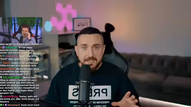 00:46:24Im Stream wird die Art und Weise, wie Maestro seine Argumente präsentiert, als aufgeklärt und gebildet gelobt. Er wird dafür gelobt, dass er gute Beispiele bringt und sachlich argumentiert, anstatt nur Beleidigungen zu nutzen. Im Gegensatz dazu wird Tobias Hochs Verhalten als äußerst schlecht verkaufen und unnötig beschrieben. Sein Auftreten wird als sehr negativ bewertet, seine Aussagen werden als schlimm und introspektiv bemängelt, wobei Zweifel an seiner Selbstwahrnehmung geäußert werden. Er kritisiert auch den Verlust von Abonnenten von Tobias Hoch und relativiert dies, indem er erklärt, dass es normal sei, Abonnenten zu verlieren, wenn man keine Inhalte mehr veröffentlicht.