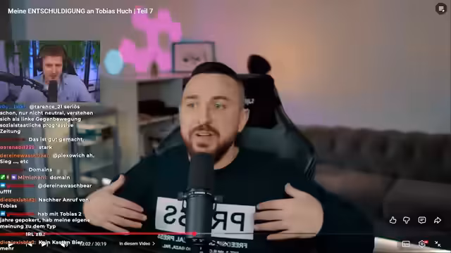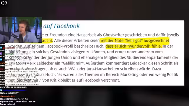 Der Streamer befasst sich kritisch mit Tobias Huch. Es werden Vorwürfe zu dessen Umgang mit Spendennachweisen, die als manipuliert und nicht transparent genug dargestellt werden, behandelt. Zudem wird Huchs Verharmlosung akademischen Betrugs beim Schreiben von Hausarbeiten für Freunde kritisiert. Seine Argumentationsweise und die Diskrepanz zwischen Selbstdarstellung und tatsächlichem Handeln werden ebenfalls hinterfragt.