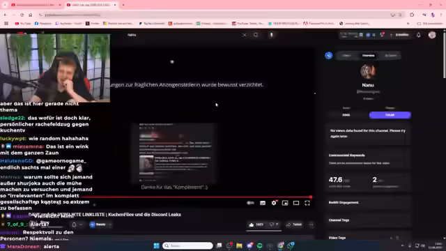 00:17:37Der Streamer wendet sich den neuen Discord-Leaks von KuchenFiles zu. Er rekonstruiert die Vorkommnisse um eine angebliche Strafanzeige, die im Nachhinein in ein KuchenFiles-Video einfloss. Er analysiert widersprüchliche Aussagen von Dave, der behauptet, nicht zu KuchenFiles zu gehören, und doch über einen anonymen Mittelsmann auf deren Material zurückgegriffen zu haben. Der Streamer argumentiert, dass dieser Vorgang eine bewusste Täuschung sei, um Dave von KuchenFiles und Shuyoka zu distanzieren.