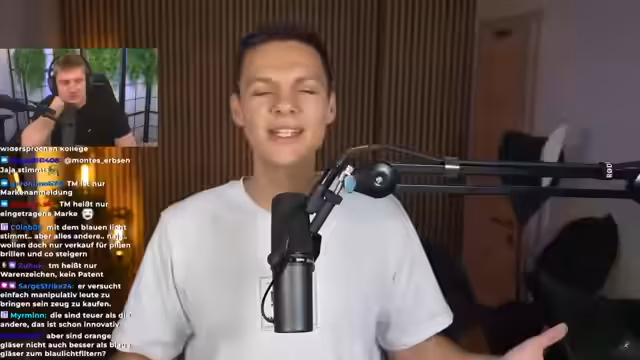 00:46:16Der Streamer analysiert die auf der Webseite von Blue-Buff gemachten Aussagen und findet mehrere, seiner Meinung nach, nachweisbar falsche Behauptungen. Dazu zählen die Versprechen einer durch die Brille verbesserten Reaktionszeit, eines Konzentrationsboosts und der Vermeidung von Sehproblemen bei längerem Bildschirmkonsum. Diese Behauptungen werden als reinen Quatsch und Betrug bezeichnet, da sie wissenschaftlich nicht belegt sind. Zudem wird die suggerierte Verbindung zur E-Sportszene kritisch hinterfragt.