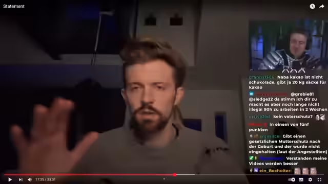 00:24:59Schiebler äußert sich zu einem Video einer ehemaligen Mitarbeiterin, in dem sie die Zustände in seiner Firma kritisiert. Er erklärt, dass er als Geschäftsführer der Firma vorsichtig sein muss, was er sagt, da alles von Anwälten geprüft wird. Schiebler erzählt, dass er und Nicole eine Kakaofirma gegründet haben und anfangs den Versand selbst erledigt haben. Später haben sie drei Mitarbeiter auf 450-Euro-Basis eingestellt. Er beschreibt das Verhältnis zu den Mitarbeitern als vertraulich und entspannt. Sie hätten zusammen gefrühstückt und Halloween gefeiert. Schiebler räumt ein, dass es offensichtlich sei, dass er die Situation nun beschönigt. Ihm sei wichtig gewesen, dass die Mitarbeiter ihre Aufgaben erledigen. Die Firma lebe davon, dass es ihm und Nicole gut gehe. Kakao sei ein saisonales Produkt, das hauptsächlich im Herbst und Winter gekauft werde. Er habe den Mitarbeitern gesagt, dass es Phasen geben werde, in denen sie nichts zu tun haben.