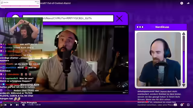 00:53:22Es beginnt eine Reaktion auf einen Stream von Nerdicus, in dem dieser Rassismus von Jesus relativiert haben soll. Es wird kritisiert, dass Nerdicus und Jaysus Dinge vorwerfen, die sie selbst tun. Nerdicus wird vorgeworfen, eine Fassade zu zeigen und sich verändert zu haben, seit er gemerkt hat, was funktioniert. Es wird angedeutet, dass Nerdicus' Community aus verlorenen Seelen besteht und dass er KuchenTV "Arschkriecherei" vorwirft, obwohl er selbst Jaysus kritisiert. Es wird kritisiert, dass Nerdicus nur schwarz und weiß sieht und keine Grautöne akzeptiert. Es wird kritisiert, dass Nerdicus bei Kritik an Jaysus den Kontext nicht berücksichtigt, während er bei KuchenTV und Co. den Kontext ignoriert. Es wird kritisiert, dass Nerdicus sich als linker Aktivist darstellt, aber sexistische Aussagen von Jaysus herunterspielt.
