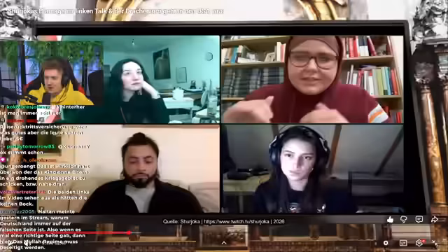 00:43:11Der Streamer analysiert nun den ersten Teil des Shuyoka Streams. Er kritisiert die Moderation scharf dafür, kritische Fragen aus dem Chat systematisch zu entfernen. Als Beispiel führt er eine Frage zur Solidarität mit zivilen Opfern in Israel und Gaza an, die Shuyoka komplett ignorierte und stattdessen ihre Monologe fortsetzte. Das Verhalten beschreibt der Streamer als herablassend und oberflächlich, wobei er Shuyoka vorwirft, den Chat nicht als gleichberechtigten Diskurspartner, sondern als Publikum zu behandeln, von dem sie sich Subs abgreift.