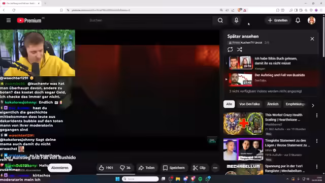01:41:01Der Streamer reagiert auf ein Video über den Rapper Bushido und seinen rasanten Abstieg. Er beleuchtet die Gründe, darunter den Beef mit Kollegah und Farid Bang, die Trennung von seinem Geschäftspartner Arafat und den massiven Image-Schaden durch den Verrat von Capital Bra. Er diskutiert die Rechtfertigung von Bushidos Entscheidung, Polizeischutz in Anspruch zu nehmen und gegen die Abou-Chaker-Familie auszusagen, kann dies jedoch aus seiner Sicht nachvollziehen, da dies der einzige Ausweg aus der Abhängigkeit gewesen sei.
