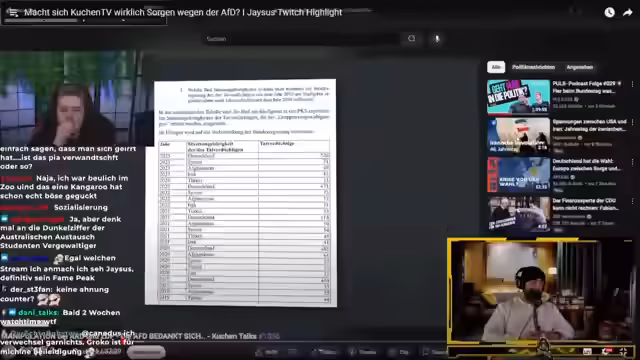 01:55:09Die Aussagen von KuchenTV zu politischen Themen, insbesondere im Umgang mit der AfD, werden kritisch hinterfragt. Es wird diskutiert, ob er durch seine Videos unbeabsichtigt rechte Narrative bedient und sich distanzieren sollte. Der Sprecher selbst betont, dass er keine Wahlwerbung für die AfD machen wollte und wirft KuchenTV vor, seine Aussagen falsch darzustellen und auf Inhalte zu reagieren, die ihn angeblich langweilen.