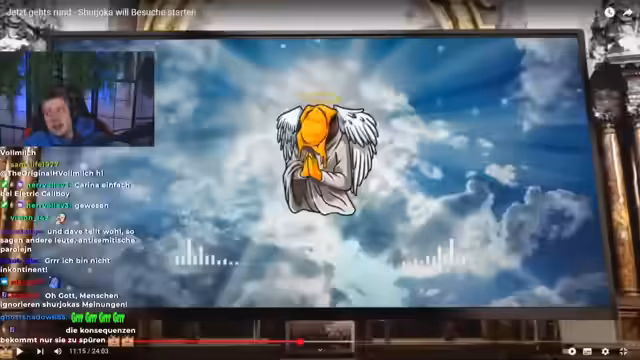 00:31:51Im Stream wird das dreijährige Bestehen des KuchenTV-Kanals gefeiert. Der Streamer bedankt sich bei seinen Abonnenten für ihre Unterstützung. Anschließend wird auf ein Video von Heiligem Ofenkäse reagiert, in dem es um Shuyokas Ankündigung geht, Hater zu besuchen. Der Streamer zeigt sich beeindruckt von der Reaktion und analysiert Shuyokas aktuelle Eskalationsstufe sowie ihre Verhaltensmuster gegenüber ihm und anderen Influencern.