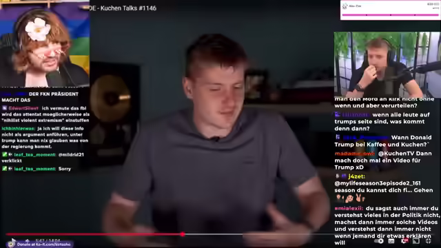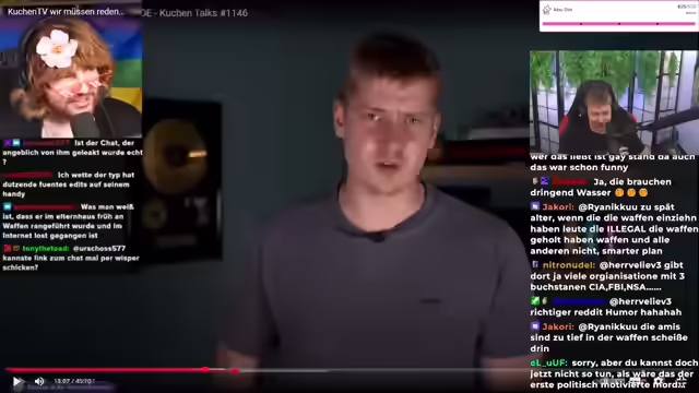 00:41:10Der Streamer setzt die Analyse des Kircho-Videos fort und geht auf weitere Details des Attentats in den USA ein. Es wird diskutiert, ob der Täter ein Republikaner war und welche Motive er hatte. Der Streamer äußert Zweifel an der Darstellung von Heidi Reichenegg und betont, dass man nicht mutmaßen sollte, ohne ausreichende Beweise zu haben. Es wird auch die Frage aufgeworfen, ob man als rechtskonservativer Mensch gleichzeitig für Transpersonen sein kann. Der Streamer betont, dass man nicht der Meinung hinterher trauern sollte, sondern der Tatsache, dass ein Mensch während eines Diskurses getötet wurde.