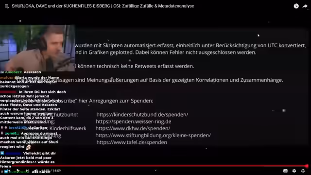 00:21:54Nach einiger Einführung und den technischen Vorbereitungen beginnt der Streamer mit der Analyse des Videos, das Dave, Shuyoka und die Kuchen-Files thematisiert. Er stellt klar, dass die Person hinter Kuchen-Files mit hoher Wahrscheinlichkeit Dave ist, und grenzt das Projekt von früheren Versuchen wie der Spongeboss-Sache ab. Er betont den umfangreichen Charakter der Dokumentation, die Streams, Videos, Clips und Podcasts umfasst, und spricht eine offene Einladung an die Community, bei der Dokumentation auf Discord mitzuarbeiten.