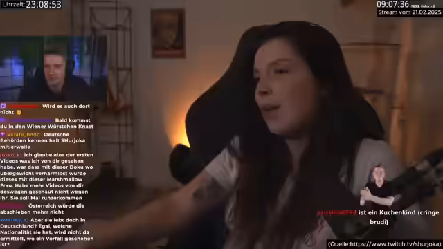 00:45:17Shuyoka kritisiert, dass es in Deutschland keine juristische Handhabe gibt, um Brandstifter wie KuchenTV für die von ihm verursachte Gewalt und existenziellen Schäden zur Verantwortung zu ziehen. Sie betont, dass dies für ihn ein Spaß ist, für andere aber existenzbedrohend. Sie argumentiert, dass diese Form der Gewalt auf Social-Media-Plattformen nichts verloren hat und rigoros unterbunden werden muss. Shuyoka berichtet von Gesprächen mit dem DSN und Expertinnen, die ihre Einschätzung teilen, sowie vom Staatsschutz in Österreich, der Männer in Deutschland sieht, die ein Geschäftsmodell auf der sadistischen Demütigung und Zerstörung einer Frau aufbauen, um ihren eigenen Profit zu maximieren. KuchenTV kontert, dass Frauen nicht mehr kritisiert werden dürfen, ohne als dämonisiert zu gelten, und bezweifelt die Aussagen des Staatsschutzes.