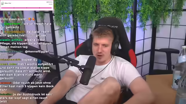 00:00:53Es wird über den aktuellen Zustand gesprochen, wobei betont wird, dass nach längerer Zeit wieder ausreichend Schlaf gefunden wurde. Ein zuvor geplanter Livestream musste aufgrund von Erschöpfung verschoben werden. Zudem wird der erfolgreiche Start eines Nikotinentzugs thematisiert, der vor etwa drei Tagen begonnen hat. Es wird reflektiert, dass frühere Versuche oft scheiterten, aber diesmal die ersten Hürden bereits überwunden sind. Die Schwierigkeiten des Nikotinentzugs werden hervorgehoben, einschließlich möglicher depressiver Phasen, Stimmungsschwankungen und Schlafstörungen. Trotz der Herausforderungen wird der positive Aspekt betont, dass selbst eine kurze nikotinfreie Phase dem Körper guttut. Es wird auf die Problematik des Rauchens als Sportler eingegangen, wobei jedoch relativiert wird, dass es sich um Amateursport handelt. Der starke Suchtdruck und die damit verbundenen Cravings werden thematisiert, ebenso wie Strategien zur Vermeidung von Rückfällen, wie beispielsweise das Mitnehmen von wenig Geld, um den Kauf von Zigaretten zu verhindern. Es wird die eigene Unruhe und Konzentrationsschwierigkeiten aufgrund des Entzugs festgestellt. Es wird erwähnt, dass das Video für den nächsten Tag bereits fertiggestellt ist und der Stream voraussichtlich bis 18 Uhr dauern wird, da noch Fußballtraining ansteht. Abschließend wird kurz auf positives Feedback zu einem Nerdy-Video eingegangen.