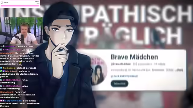 00:38:46Es wird angekündigt, auf ein Video von Just Nero zum Thema "Brave Mädchen" zu reagieren. Der "Brave Mädchen"-Podcast, ein Format von Funk, wurde aufgrund von Kritik vorerst pausiert. Der Streamer zeigt sich erfreut über diese Entwicklung. Es wird auf die negativen Bewertungen und die Kritik an dem Podcast eingegangen. Es wird Just Neros Kritik an dem Podcast zusammengefasst, der diesen als öffentlich-rechtliche Sammelsitzung bezeichnet, in der auf einem erbärmlichen Niveau gelästert wird. Es wird erwähnt, dass Just Nero plant, weitere Videos zu dem Thema zu machen, aber aufgrund der Aktualität und der Sorge um seinen Cutter die Inhalte auf mehrere Teile aufteilt. Der Streamer betont sein Interesse an dem Thema und seine Wut über den "gottverlassenen Dreckscheiß". Er kritisiert Funks Totalversagen und stellt Fragen zur Programmabnahme. Abschließend lobt er Just Neros inhaltliche Stärke, wünscht sich aber zusätzlich ein Subway-Surfer-Gameplay in seinen Videos.