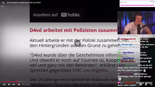 01:36:18Es wird angekündigt, dass auf KuchenTV Uncut zukünftig ein breiteres Themenspektrum behandelt wird, um Kritikern zu zeigen, dass der Kanal mehr zu bieten hat als nur die gleichen Themen. Es wird humorvoll angedeutet, dass Susan Ushuyuka feststellen wird, dass die Zuschauerzahlen dadurch noch weiter sinken werden. Als Reaktion darauf wird um Spenden gebeten, um die Einnahmeverluste auszugleichen. Es wird angekündigt, dass auf den Fall des Rappers David reagiert wird, bei dem eine zerstückelte Leiche im Kofferraum seines Teslas gefunden wurde. Zunächst wird angenommen, dass David selbst tot sei, aber dann stellt sich heraus, dass er möglicherweise in den Mordfall verwickelt ist. Es wird spekuliert, ob der Tesla möglicherweise von linken Aktivisten manipuliert wurde, um David zu schaden, insbesondere im Hinblick auf die Kontroversen um Elon Musk.