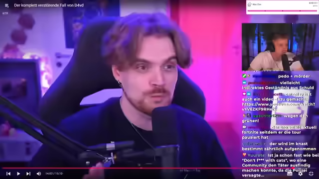 01:51:43Es wird auf das Musikvideo zu Davids Song "Romantic Homicide" hingewiesen, das am Geburtstag von Celeste veröffentlicht wurde und dessen Lyrics im Nachhinein als gruselig empfunden werden. Es werden weitere Red Flags in Bezug auf David erwähnt, darunter TikTok-Reposts, die Gewaltfantasien und Eifersucht suggerieren. Discord-Nachrichten von David werden zitiert, in denen er Gore-Videos als besser als Pornos bezeichnet und seine bewusste Desensibilisierung gegenüber Gewalt thematisiert. Es wird ein Twitch-Clip erwähnt, der nach dem Verschwinden von Celeste aufgenommen wurde und in dem David mit einer anderen jungen Frau zu sehen ist, die einen Gap-Hoodie trägt, ähnlich dem, den Celeste bei ihrer Vermisstenanzeige trug. Diese Frau wird als Celeste Herrera identifiziert, die über 20 Jahre alt ist. Es wird spekuliert, dass David ihr den Namen Celeste gegeben hat und sie möglicherweise eine Schachfigur oder ein Alibi ist.