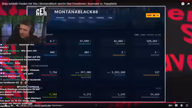 03:08:25Ein weiterer Teil des Streams widmet sich den Einnahmen von MontanaBlack. Dieser hat in einem Stream erwähnt, dass YouTube eine seiner Haupteinnahmequellen ist und er damit monatlich brutto etwa 100.000 Euro verdient. Zusätzlich verdient er Geld durch sein Unternehmen Gunnergy, auf dem er Werbung schalten kann. Auch andere Plattformen wie Snapchat werden thematisiert, wo er an einem Tag bis zu 1.800 Euro verdient hat, was aber sehr von der persönlichen Aktivität abhängt. Der Streamer reflektiert auch über die Monetarisierung von nicht-grünen Videos und betont den Wert von Reichweite als eigener Währung, auch wenn direkte Einnahmen fehlen.
