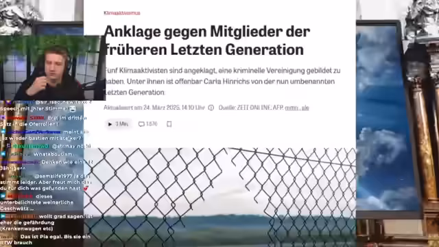 00:49:30Der Streamer analysiert die Gruppe 'Letzte Generation' und kommt zu dem Schluss, dass es sich bei dieser um eine kriminelle Vereinigung handelt. Die Begründung dafür ist, dass sich die Mitglieder explizit zusammengeschlossen haben, um Straftaten wie gefährliche Eingriffe in den Straßen- und Flugverkehr sowie Nötigung zu begehen. Dies wird mit dem Beispiel einer Gruppe verglichen, die sich gegründet hat, um Banküberfälle zu begehen. Die rechtliche Einordnung als kriminelle Vereinigung wird als angemessen angesehen, da das primäre Ziel nicht Aufklärung, sondern die Begehung von Straftaten war.