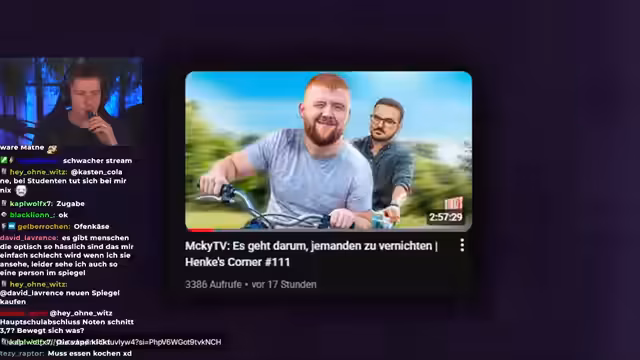 00:16:59Der Streamer berichtet über die Beziehung zwischen Shuyoka und ihrem Partner Dave. Er mutmaßt, dass sie sich getrennt haben und dass beide Seiten daraus Vorteile ziehen. Er beschreibt Dave als manipulativ und verantwortlich für Shuyokas Radikalisierung, die ihrer Karriere geschadet habe. Er erwähnt seinen eigenen beef mit Tobias Hoch, dessen Video er bald anschauen will. Er kritisiert Tobias' Unfähigkeit, auf Kritik sachlich einzugehen und stattdessen immer wieder mit Lügen und persönlichen Angriffen zu reagieren. Er fühlt sich von Tobias unfair in die Diskussion hineingezogen.