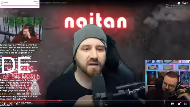 02:11:15Der Streamer diskutiert die Definition von Veganismus und argumentiert, dass es nicht radikal sei, Tiere als Lebewesen und nicht als Objekte zu betrachten. Er räumt ein, dass Robert Mark Lehmann wahrscheinlich radikale Veganer meint, die andere angreifen. Der Streamer kritisiert die Idee von „unperfekten Veganern“ und argumentiert, dass dies gegen die vegane Grundprämisse gerichtet sei. Er betont, dass es ihm leid tue, dies zu relativieren, aber er sei froh, kein Veganer zu sein, da er die Streitereien um Wörter als Wahnsinn empfindet. Der Streamer räumt ein, dass Neitan in gewisser Weise Recht hat, aber er würde sich nicht an solchen Kleinigkeiten festmachen. Er betont, dass es wichtiger sei, Menschen dazu zu bringen, ihren Konsum zu überdenken und zu verändern, anstatt sich an Definitionen aufzuhalten. Der Streamer argumentiert, dass der individuelle Veganismus den Tieren wenig helfe und dass Tönnies Genozid am Tier betreibe. Er freut sich über jeden Schritt in die richtige Richtung und würde sich nicht daran aufhalten, wer an einem Freitag was isst und ob er sich Veganer nennt oder nicht.