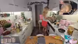 01:59:52Nachdem der Pürierstab nicht gefunden wurde, wird mit der Vorbereitung der Zutaten für die Bolognese-Soße fortgefahren. Große Mengen an Zwiebeln, Knoblauch, Möhren und Sellerie werden kleingeschnitten. Dabei wird eine besonders große Möhre entdeckt, die im Verhältnis zum Gericht zu viel werden würde. Die gewürfelten Zutaten werden in Butter angedünstet, danach mit Rotwein abgelöscht und mit Tomatenmark, Tomatenstücken und verschiedenen Gewürzen wie Oregano, Thymian und Basilikum vermengt. Die Soße wird aufgekocht und soll noch reduzieren.