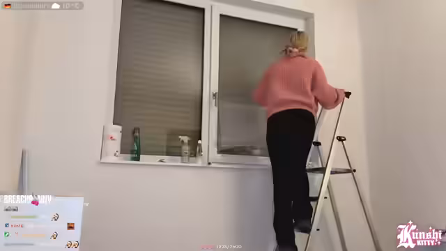 05:41:40Vorbereitungen für das Anbringen von Milchglasfolien werden getroffen, doch es fehlen geeignete Werkzeuge wie eine Sprühflasche, Schere und Spülmittel. Der Streamer misst die Fenster (ca. 1,27 Meter breit) und schneidet die Folie zu, bemerkt aber, dass ohne Sprühflasche oder eine Plastikkarte zum Glattstreichen keine einwandfreie Anbringung möglich ist. Die Heizung bleibt defekt, was als problematisch für den Winter beschrieben wird, während der Streamer versucht, durch Bewegung während des Aufbaus warm zu werden.