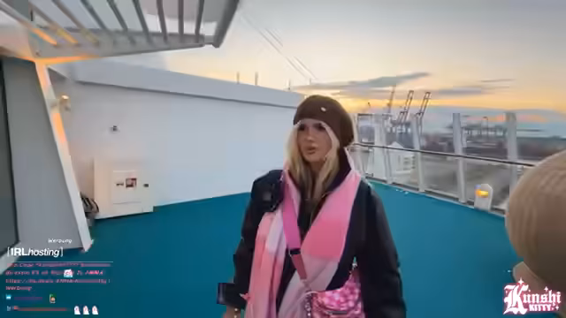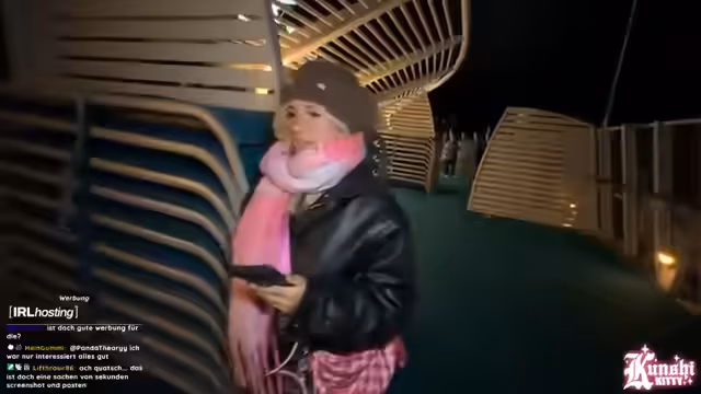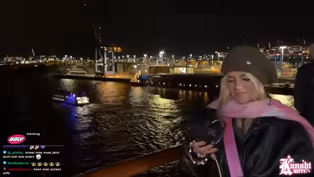 00:40:58Die Streamerin spricht über ihre persönlichen Vorbereitungen für die Reise und berichtet, dass sie die Kofferpackung als anstrengend empfunden hat, besonders da das Wetter kalt wird und sie Winterkleidung mitnehmen musste. Sie erzählt eine hektische Geschichte über das Verlassen des Schiffes, um eine wichtige Pille in einer Apotheke in Hamburg zu holen, da sie sie vergessen hatte und Angst vor hormonellen Auswirkungen hatte. Nach einer stressigen Fahrt mit dem Taxi zurück zum Schiff hat sie sich kurz eingerichtet und direkt mit dem Stream begonnen. Kurz vor der Abfahrt um 20 Uhr versucht sie sich gegen die Kälte zu wappnen, indem sie sich mit einer Decke umgibt und einen Schal trägt, um den Auslauf aus dem Hamburger Hafen gemeinsam mit der Community zu erleben.
