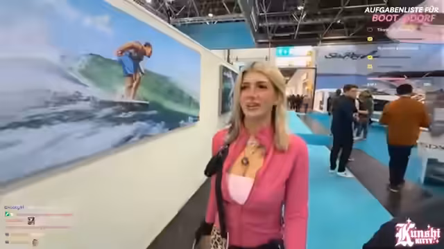 03:45:23Die Streamerin ist auf der Suche nach einem geeigneten Boot, um den versprochenen 'Titanic-Moment' für ihren Stream zu inszenieren. Gleichzeitig beginnt sie aktiv mit der Suche nach dem teuersten Boot auf der Messe, von dem sie bereits gehört hat, dass es sich um einen Wert von 10 Millionen Euro handeln könnte. Sie beschreibt die Messe als ein riesiges Labyrinth, in dem sie sich schnell den Überblick verliert.