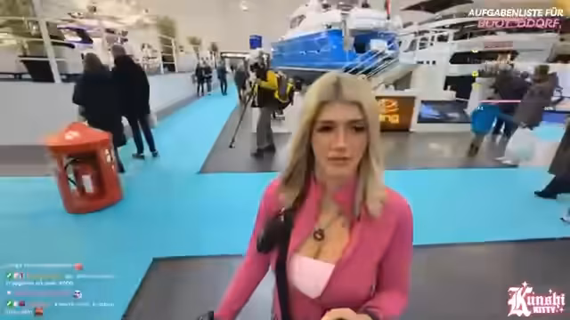 05:32:12Die Streamerin versucht, eine Challenge zu erfüllen, bei der sie mit einer fremden Person eine Titanic-Pose auf einem Boot einnehmen soll. Sie fragt einen Mitarbeiter eines Bootsstandes, ob er mitmachen würde, wird aber abgelehnt. Sie vermutet, dass die schwedischen Firmen eher bereit gewesen wären, mitzumachen. Die Streamerin ist frustriert über die Ablehnung und ihren erhöhten Puls. Sie überlegt, ob sie die Challenge stattdessen auf einem kleineren Boot oder einem Tretboot versuchen soll. Sie äußert ihren Ärger darüber, dass sie immer einen Korb bekommt, wenn sie sich an etwas traut. Die Streamerin vermutet, dass die Leute eher bereit wären mitzumachen, wenn sie ein großer TikTok-Creator wäre. Sie und Max setzen ihren Rundgang fort und werden von einem Mitarbeiter eines Standes abgewiesen, als sie sich entschuldigen. Die Streamerin überlegt, ob sie beim nächsten Stand lügen soll, um die Challenge zu erfüllen, befürchtet aber, dass sie dann einen Beweis erbringen muss. Sie schlägt vor, noch eine Runde durch die Halle zu drehen und dann zum DLRG-Stand zu gehen, um dort nachzufragen. Sie erinnert sich an einen Stream, in dem sie in Amsterdam in einem Club war und der Clubmanager sie mit Alkohol abgefüllt hat.