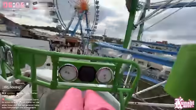 07:09:23Nachdem sie sich in der Achterbahn befestigt hat, fährt die Streamerin erfolgreich die Looping-Achterbahn und die Alpina-Bahn. Sie ist von der Erfahrung begeistert und beschreibt die Fahrt als 'geil' und 'spannend'. Obwohl sie anfangske Sorge hatte, dass ihr Equipment verloren gehen könnte, ist alles nach der Fahrt noch vorhanden. Sie ist erleichtert und froh, die Fahrten absolviert zu haben, und teilt ihre Begeisterung mit dem Chat.