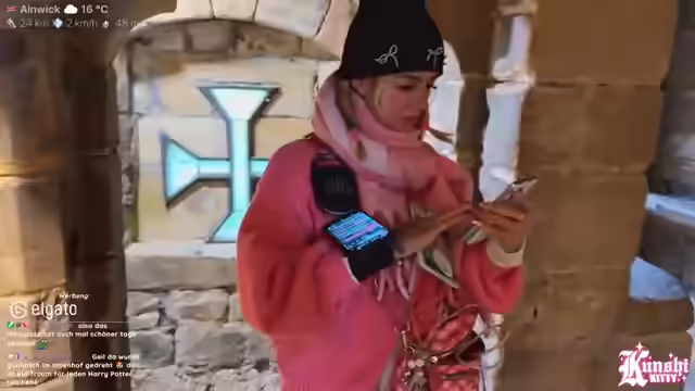 02:03:33Die Besichtigung von Alnwick Castle, auch bekannt als John Wick Castle, beginnt. Es wird erwähnt, dass aktuell der Duke in den Innenräumen des Schlosses wohnt, weshalb diese nicht gefilmt werden dürfen. Der Ausflug kostet 60 Euro pro Person. Die massiven, originalen Burgmauern verhindern den Empfang von mobilem Internet in den Innenräumen. Die Streamerin zeigt Details der Burg, wie Kreuze und andere Verzierungen. Es werden Aufnahmen für das Intro gemacht, wobei eine Lampe und ein Verlies besonders ins Auge fallen. Spekulationen über die frühere Nutzung eines Folterinstruments oder Brunnens werden angestellt. Es wird ein Mechanismus für ein Fallgitter entdeckt. Der Besuch der Küche mit alten Öfen und Kupfergegenständen wird gezeigt, inklusive eines Kühlschranks von 1859. Der Beef Tower ist leider geschlossen. Das düstere Wetter passt gut zur Atmosphäre des Schlosses.
