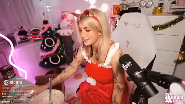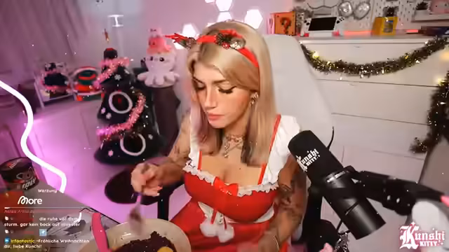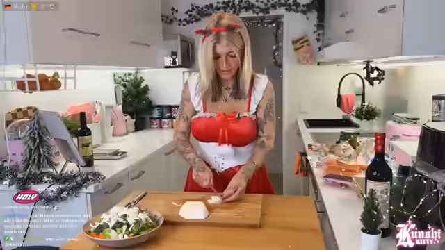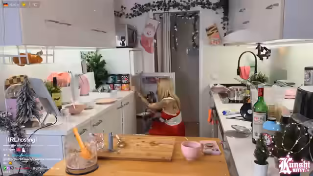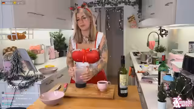 06:20:17Trotz des gescheiterten Experiments plant die Streamerin ein vollständiges Weihnachtsessen: Ihre selbstgemachte Bratensoße, Klöße (entweder selbstgemacht oder fertig gekauft), Rotkohl aus der Packung und Salat. Sie erwägt, die Sauce mit Ahornsirup abzurunden oder mit Mandelmilch aufzuhellen, und diskutiert, ob sie die Sauce einkochen oder mit Stärke andicken soll. Da sie allein isst und zuvor schon beim Kochen genascht hat, bleibt Zeit für eine frühe Mahlzeit. Das Essen soll mit dem Twitch-Chat gefeiert werden.