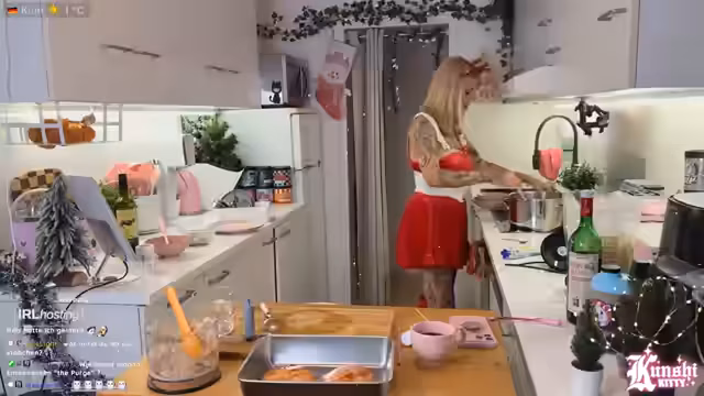 05:13:19Die Streamerin steht seit über eineinhalb Stunden in der Küche, um eine vegane Bratensauce zuzubereiten. Sie diskutiert den Einsatz von Senf zur Abschmeckung, stellt aber fest, dass er nicht essenziell ist, da die Sauce bereits stark nach Bratensoße riecht. Neben der Sauce plant sie die Zubereitung von Gemüsebrühe (1,5 Liter) und erwähnt den Umzug in eine neue Wohnung mit einer Kochinsel, auf die sie sich besonders freut. Die aktuelle Küche wurde nur teilweise modernisiert, aber die Lichter und Arbeitsplatte wurden aufgerüstet.