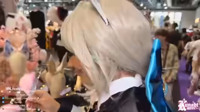 03:49:40Streamerin erinnert sich, dass sie damals beim Release eines Spiels gestreamt hat, aber wegen anstrengenden täglichen Aufgaben (Dailies) wieder aufgehört hat. Sie schildert ihr aktuelles Cosplay-Problem: Ihre Perücke ist beschädigt und sie muss entscheiden, ob sie die Perücke oder ihr Ohr opfern will. Sie entscheidet sich für die Perücke. Der Fokus wechselt zu Mystery Bags und Lucky Bags auf der Messe, insbesondere zu Cinema World, Dragon Ball, Sailor Moon und Hello Kitty Mystery Bags. Sie entdeckt eine Vielzahl von Accessoires wie einen Evoli-Hut, einen Zylinder und versucht, diese zu probieren, stößt aber auf Herausforderungen bei der Handhabung und Passform.