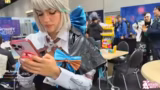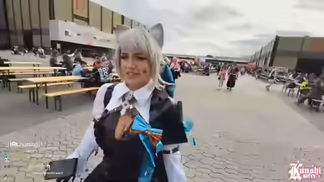01:39:41Nach der beschwerlichen Anreise trifft der Streamer auf dem Gelände der Dokomi ein. Sie bezieht einen Tisch im Innenbereich und beginnt damit, die restlichen Cosplay-Teile aus dem Rucksack zu sortieren. Das Problem bleibt, dass viele Teile, wie die Schleife, die Manschetten und der Haarreif, nicht an ihren Platz gefunden werden können. Sie ist sich unsicher, wo welche Teile hingehören und benötigt dringend Hilfe. Da ihr Kameramann Max noch immer nicht angekommen ist, muss sie sich selbst mit den unklaren Anleitungen und Fotos zurechtfinden, was zu Frust und Aggression führt.
