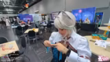 06:43:32Nach dem Regen wird es draußen frischer, und die Streamerin beschreibt die dichte Menge an Besuchern in den Hallen. Sie muss das Kabel zur Seite räumen, da es an einem Rucksack hängt. Sie stellt fest, dass die Sonne scheint, was eine Chance für bessere Bedingungen ist. Sie erwähnt, dass sie in Lunette von Genshin Impact gekleidet ist und plant, durch verschiedene Hallen zu laufen, wobei sie die 18-Plus-Halle nur von außen betritt, da sie nicht rein darf.
