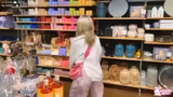 03:58:22Der Weg führt nun zur Kirmes. Hoffnung auf Gacha-Automaten und veganen Essensständen wird geäußert. Antike Figuren wie eine Mickey-Mouse-Puppe werden gezeigt. Es gibt eine Diskussion über Pilze, gefolgt von der Entdeckung verschiedener Merchandise-Stände für bekannte Figuren und Marken.