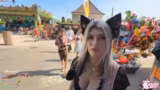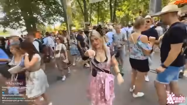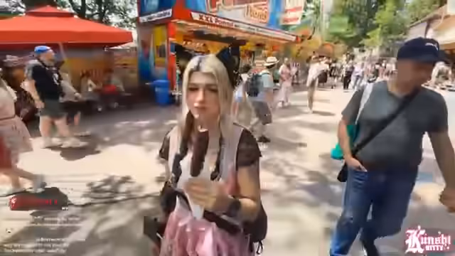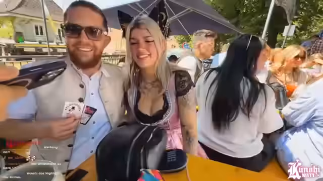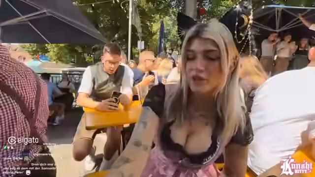 01:03:58Nachdem die Socken an sind, erkunden der Streamer und sein Begleiter das Festgelände. Sie stellen fest, dass es noch relativ leer ist, da das Fest erst seit kurzem geöffnet hat. Der Streamer erhält viel Aufmerksamkeit wegen seiner auffälligen Kleidung - Dirndl, Katzenohren und Socken in Sandalen - was bei konservativen Besuchern für Bemerkungen sorgt. Er versucht, Geld für Getränke und andere Aktivitäten aufzutreiben, nachdem sie feststellen, dass sie nur wenig Bargeld und keine funktionierende Zahlungsmethode für die Automaten haben.