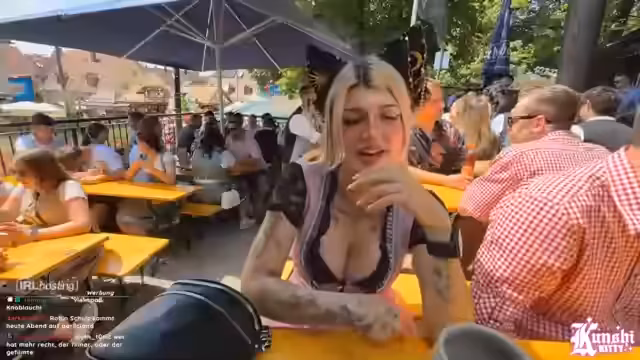 06:09:40Die Aufmerksamkeit gilt verschiedenen Besuchern und Situationen im Biergarten. Eine kurze Auseinandersetzung über den Blickkontakt findet statt, wobei die Streamerin verunsichert scheint. Gleichzeitig wird das technische Setup des Streams erklärt, einschließlich der Kamera, des Mikrofons und der verschiedenen Gadgets, die für den Stream benötigt werden.
