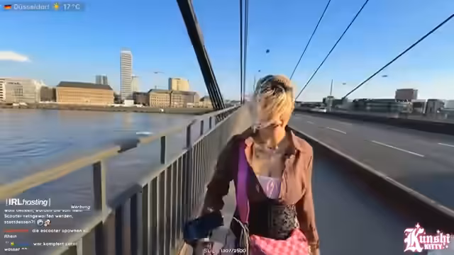 01:18:05Auf dem Weg zum Rheinstrand trafen die Streamer und ihre Helferin auf den Medienhafen, ein markantes Düsseldorfer Wahrzeichen. Die Route war lang und die mitgebrachte Grillware, einschließlich des gesamten provisorischen Equipments, musste zu Fuß geschleppt werden. Trotz der guten Laune angesichts des wunderschönen Wetters am Nachmittag stand nun der Abend bevor, bei dem die Temperaturen auf zehn Grad fallen sollten. Dies machte das geplante Grillen in der freien Natur deutlich ungemütlicher als ursprünglich geplant.