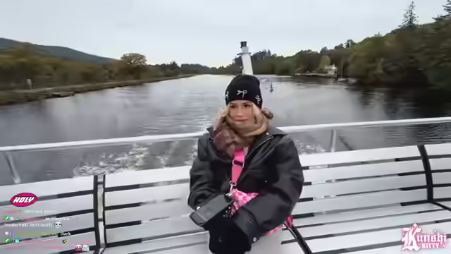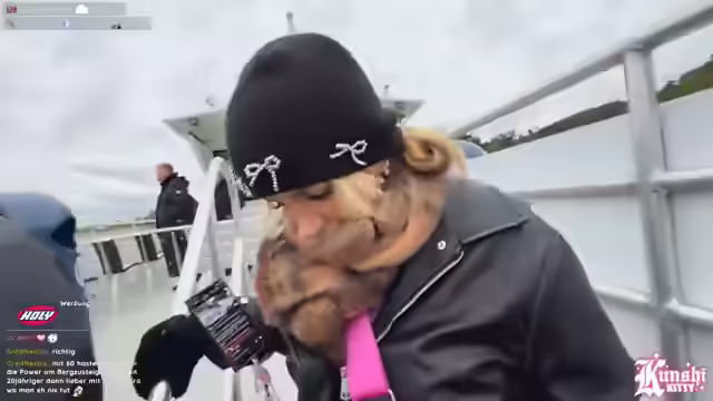 01:47:33Es werden verschiedene Kommentare aus dem Chat aufgegriffen und kommentiert. Ein Kommentar über den Verkauf von Plagiaten der Marke Lafruck wird erwähnt. Anschließend wird eine Zuschauerin für ihre Schwimmkünste gelobt. Die Streamerin äußert den Wunsch, öfter in einem See zu schwimmen. Abschließend wird die Ankunft einer großen Fähre kommentiert und sich für eine Geste im Chat bedankt.