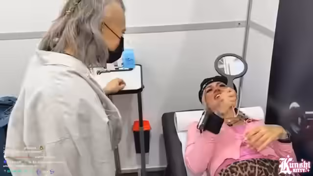 04:51:47Nach anfänglicher Ablehnung durch ihre Begleitperson entscheidet sich die Streamerin spontan dafür, sich ein Glitzersteinchen auf einen Zahn kleben zu lassen. Sie plant dies erst nach einer Essenspause und will den Klebstoff vorher bezüglich Haltbarkeit und eventuellem Abrutschen beim Zahnarzt überprüfen lassen, um unliebsame Überraschungen zu vermeiden. Eine Abstimmung im Chat zeigt eine positive Resonanz von 43 % für diese Modifikation.