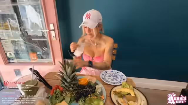 01:17:31Das gemeinsame Frühstück wird genossen, wobei das Essen als dekadent und lecker beschrieben wird, ähnlich wie auf der Titanic. Es werden verschiedene Speisen wie Avocado, Granola, Obst und Wurst probiert. Während des Essens wird die gesundheitliche Situation nochmals angesprochen, und die Streamerin merkt an, dass sie sich oft ins Auge fasst und sich Sorgen wegen ihrer Allergie macht. Sie plant, den Kalorienverbrauch durch die spätere Bewegung auf der Kirmes auszugleichen.