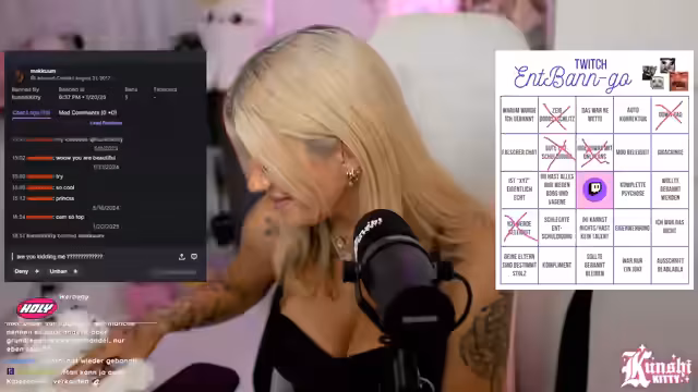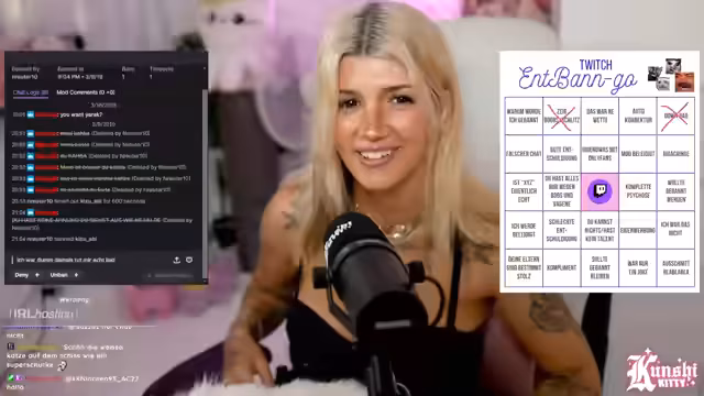 00:45:57Die Streamerin, in ihrer Rolle als 'Richterin Kunji Kitty', beginnt mit der Bearbeitung der Entbannungsanträge. Es wird festgestellt, dass die Alerts in der Szene nicht funktionieren, was auf technische Probleme hindeutet, da der Kanal lange nicht von zu Hause aus bespielt wurde. Es wird versucht, das Problem zu beheben, indem die Alerts-Einstellungen überprüft und angepasst werden. Währenddessen wird Onoxys für ein Zap-Geschenk an Grumpy gedankt. Es wird erklärt, was mit Bobs und Vagene im Bingo-Feld gemeint ist. Anschließend wird mit der Bearbeitung der Entbannungsanträge begonnen, wobei die ältesten Anträge zuerst bearbeitet werden sollen. Es wird festgestellt, dass es mehrere Seiten mit Anträgen gibt, was die Aufgabe umfangreicher macht.