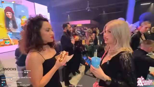 02:07:05Nachdem die Türen zur Partylocation geöffnet wurden, zeigt sich die Streamerin beeindruckt vom Ausmaß des Events. Sie beschreibt eine große Menschenmenge, eine mit Luftballonen dekorierte Bar und eine atemberaubende Location, die sie als krass und geil bezeichnet. Sie macht sich erste Notizen über die Anwesenheit von bekannten Gesichtern aus der Creator-Szene und zeigt sich aufgeregt für den weiteren Verlauf des Abends. Sie dokumentiert ihre Eindrücke zunächst per Foto und Video.