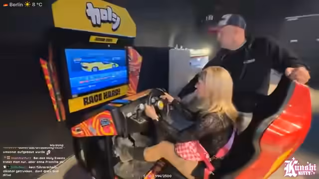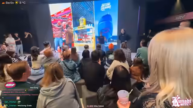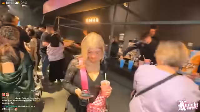 01:30:06Zu Beginn des Streams befindet sich die Streamerin vor einer angesagten Berliner Party-Location, die sie als dichtes und volles Event beschreibt. Sie äußert sich gespannt auf das bevorstehende Treffen und geht ausführlich auf ihre Vorliebe für Holi-Getränke ein. Dabei präsentiert sie verschiedene Geschmacksrichtungen wie Birthday Bunny, Tangerine Tarantula und Holi Hydration, hebt deren Frische hervor und erwähnt den Partnerschaftsvorteil mit der Marke, der ihr die kostenlose Lieferung der Produkte ermöglicht. Auch den Online-Shop mit dem Rabattcode Künchi bewirbt sie mehrfach.