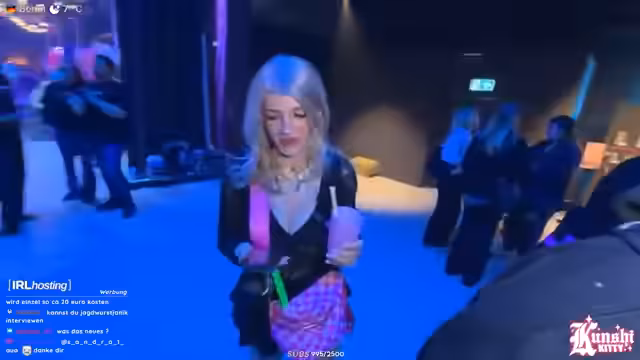 01:25:10Die Streamerin und Max erreichen das Ziel der Holy Party. Die Kamera wird vom Kameramann auf den Boden gerichtet, wahrscheinlich um die Location nicht preiszugeben, während sie sich dem Eingang nähern. Sie ist gespannt, was die Party zu bieten hat, und erwähnt, dass man pünktlich sein soll, weil etwas Kernes passieren wird. Ihr Outfit ist jetzt durch einen Pulli besser versteckt.