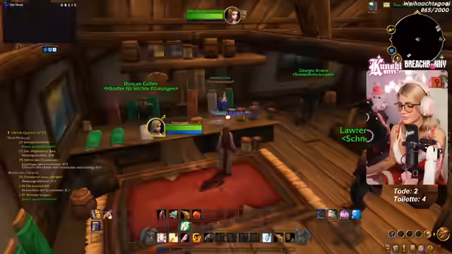 08:22:46Innerhalb des World-of-Warcraft-Spiels unterstützt der Streamer zufällige Spieler mit Materialien und gibt Tipps zur Interaktion in der Community. Er beschreibt die Laufwege im Zwergengebiet als sehr langwierig und überlegt, es zu verlassen, da es für sein Level ineffizient ist. Zudem berichtet er von technischen Herausforderungen bei der Installation von Add-ons, insbesondere dem Healbot-Add-on, das er für den kommenden Event als Heiler benötigt, jedoch zunächst als überfordernd empfindet.
