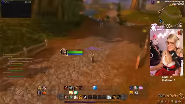 07:17:11Die Streamerin diskutiert über die optimale Startstrategie für ihren Charakter im Spiel World of Warcraft. Sie überlegt, ob es besser ist, direkt ins menschliche Gebiet zu ziehen oder als Nachtelfe im weniger besuchten Startgebiet zu bleiben, wo potenziell weniger Konkurrenz für Quests herrscht. Obwohl sie das Gebiet Dunkelküste hasst, rät sie sich selbst aufgrund der effizienten Erfahrungspunkte und geringen Spielerdichte dazu, bis Level 14 oder 15 dort zu questen. Anschließend plant sie, nach Westfall zu wechseln, um dort gezielt Mobs für das Grinden zu jagen.