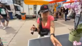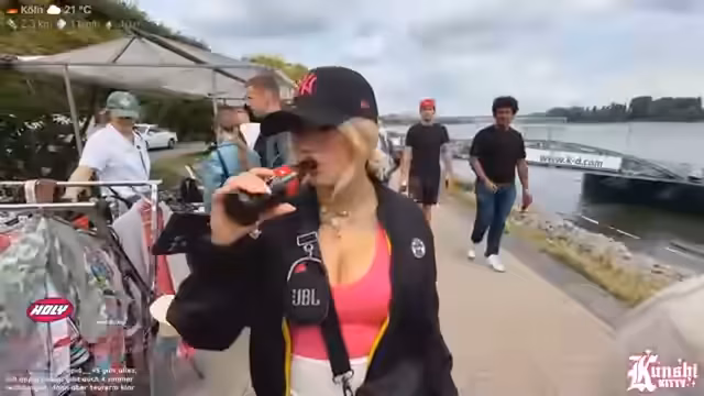04:47:19Auf dem Festival wird die Streamerin von einem anderen Creator angesprochen, der TikTok-Inhalte macht. Sie stellt sich als 'Kunchi Kitty' auf Twitch vor und unterhält sich mit ihm über die Unterschiede zwischen den beiden Plattformen und den lebendigeren Umgang der Kölner im Vergleich zu Düsseldorf. Sie diskutiert auch technische Aspekte ihres Streams wie die Einstellung auf 30 FPS, um die Internetverbindung in der Innenstadt Köln zu stabilisieren, da höhere Bitraten und 60 FPS Probleme verursachen könnten.